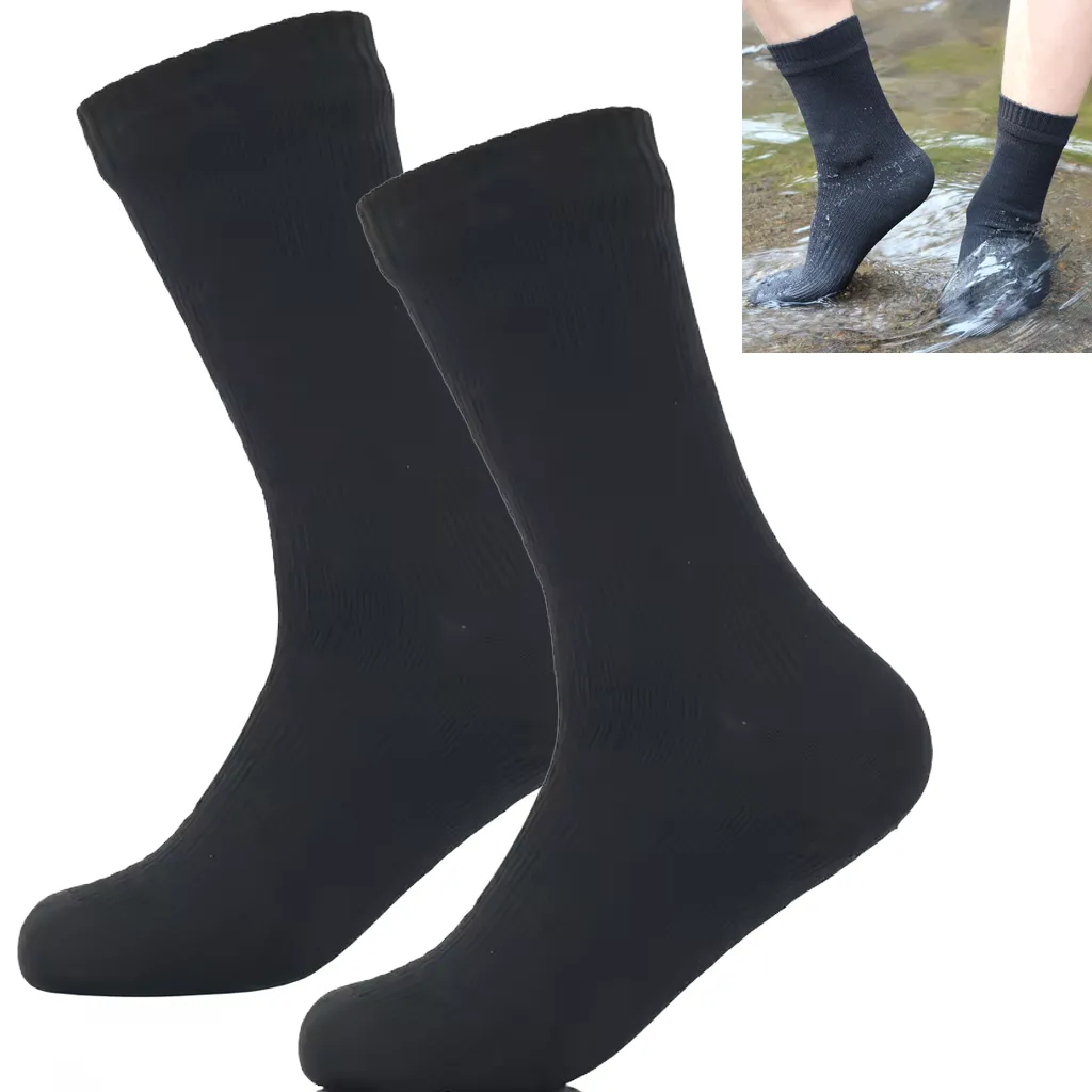 The socks use knitted nylon, so they feel like normal socks when you pull them on. However, they are built to help reduce water reaching your feet. As a result, they suit damp mornings, light rain, and quick splashes.
