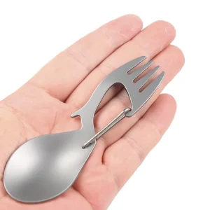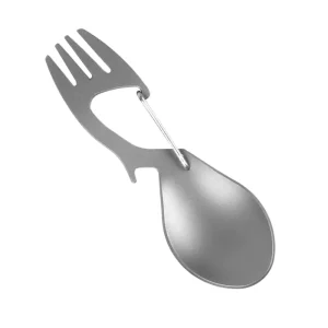 The Vuno Mini Spork combines a fork, spoon, and bottle opener in one lightweight tool. Designed for outdoor use, it fits easily in any pack.